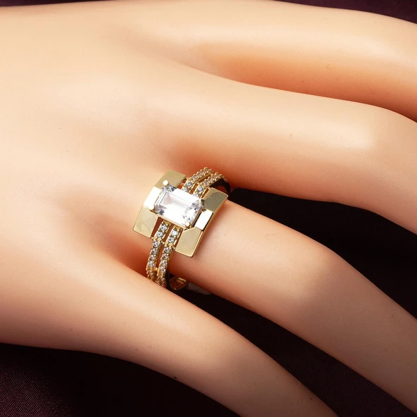 Baget Taşlı Suyolu Altın Yüzük