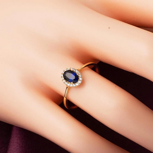 Lacivert Taşlı Altın Yüzük