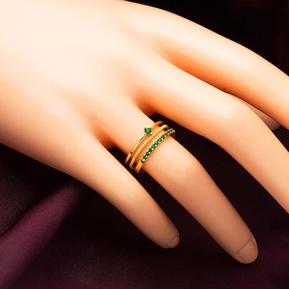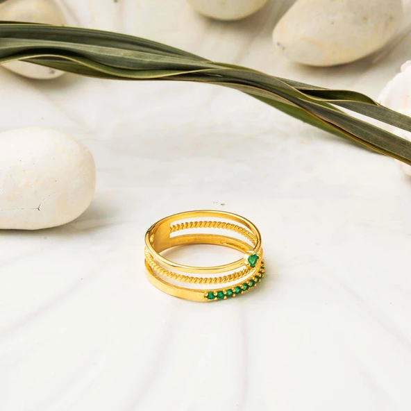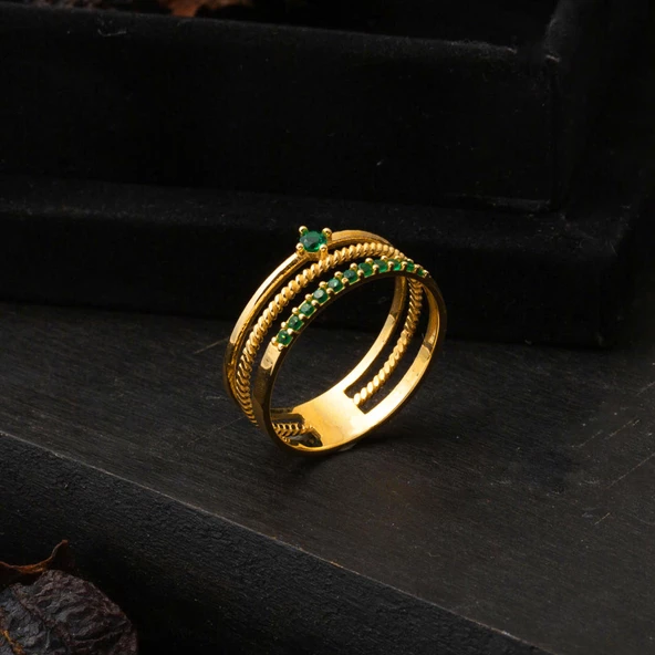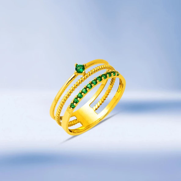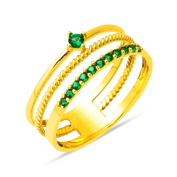 Modern Tasarım Yeşil Taşlı 22 Ayar Altın Yüzük