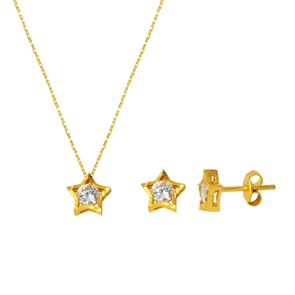 Burçlar 14 Ayar Baget Taşlı Altın Set