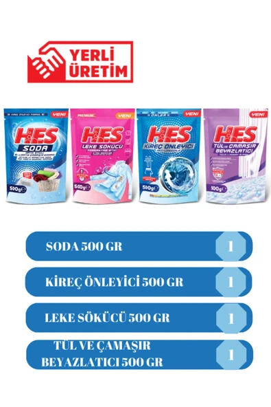 Hes Soda/Leke Sökücü R./Leke Sökücü B./Tül ve Çamaşır Beyazlatıcı 500gr 4lü Temizlik Paket