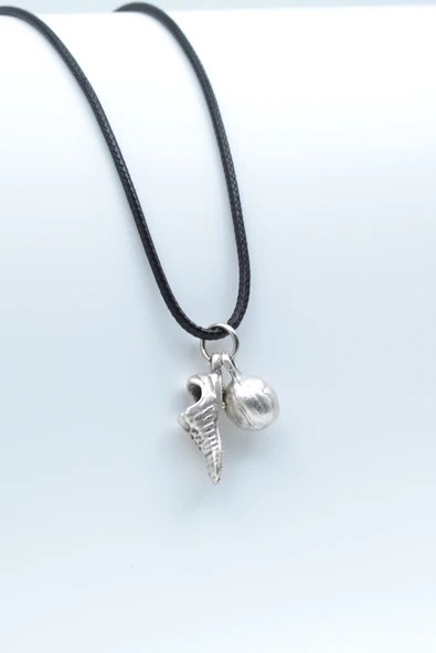 Fil Dişi Gümüş Kaplama Deri İp Kolye