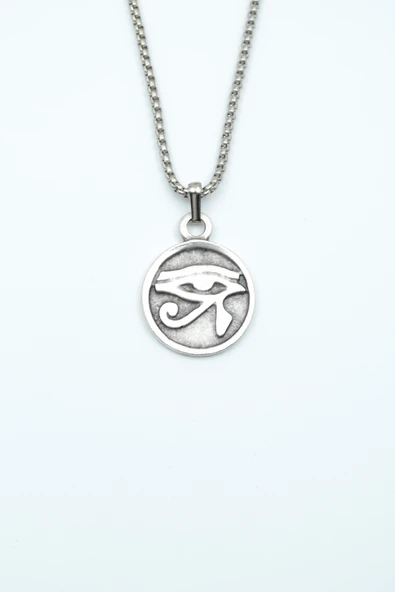 Ra'nın Gözü Madalyon Gümüş Kaplama Örme Zincir Kolye