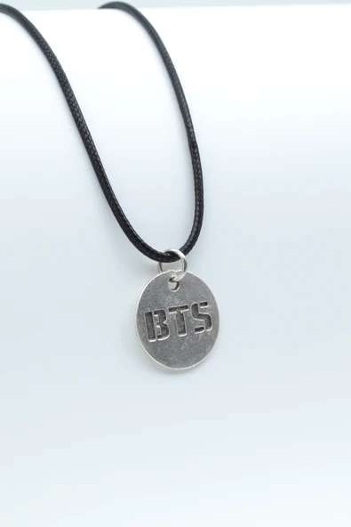 BTS Madalyon Gümüş Kaplama Deri İp Kolye