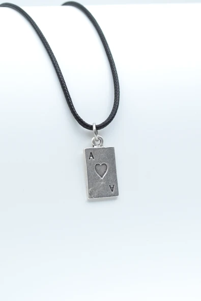 Minimal Maça As Poker İskambil Gümüş Kaplama Deri İp Kolye