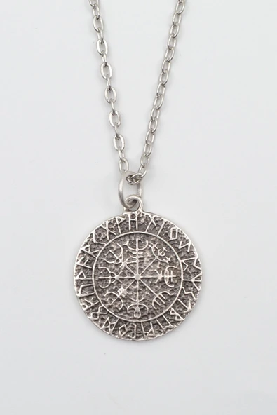 Vegvisir Viking Pusulası Gümüş Kaplama Düz Zincir Kolye