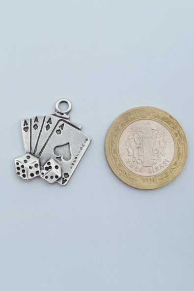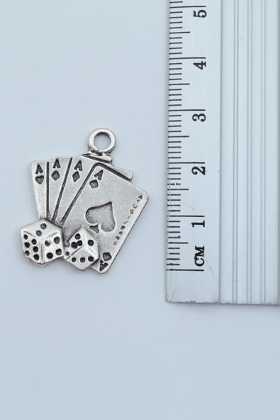 Maça As Poker İskambil - Zar Gümüş Kaplama Örme Zincir Kolye