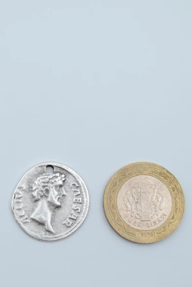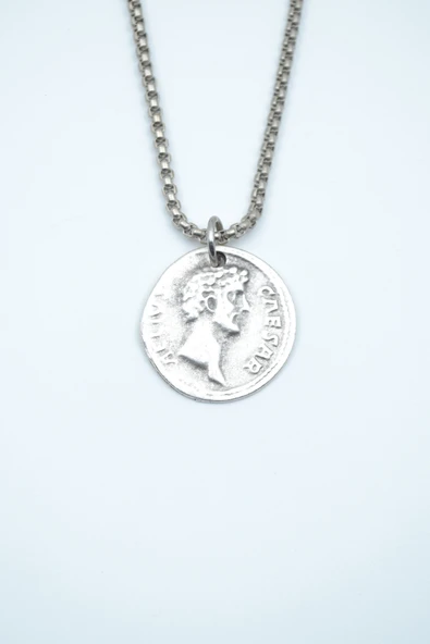Roma Parası Sikke - sezar Gümüş Kaplama Örme Zincir Kolye