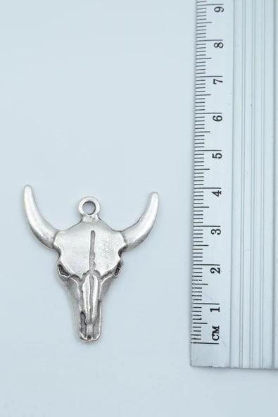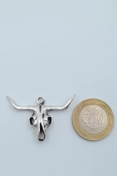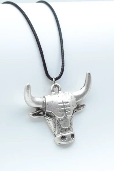 Boğa - Kuru Kafa Gümüş Kaplama Örme Zincir Kolye