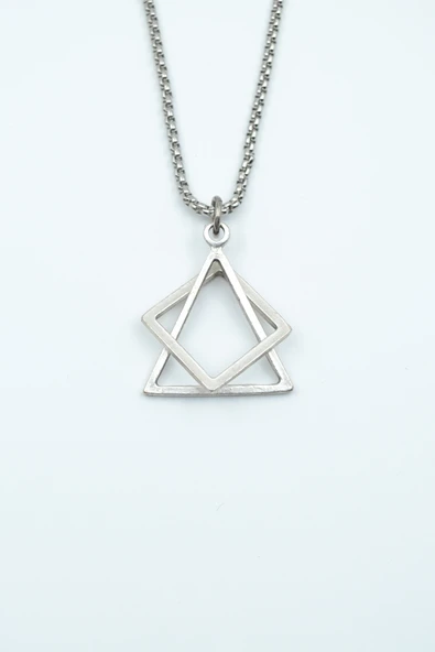 Üçgen Kare Geometrik Gümüş Kaplama Örme Zincir Kolye