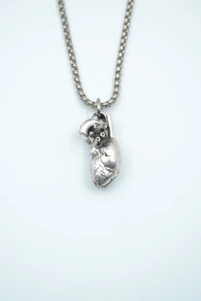 Kalp Gümüş Kaplama Örme Zincir Kolye