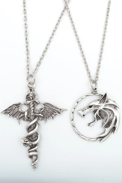 2'li The Witcher Madalyon Gümüş Kaplama Kolye Seti