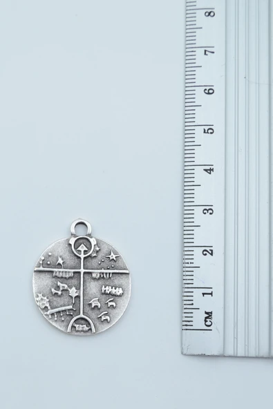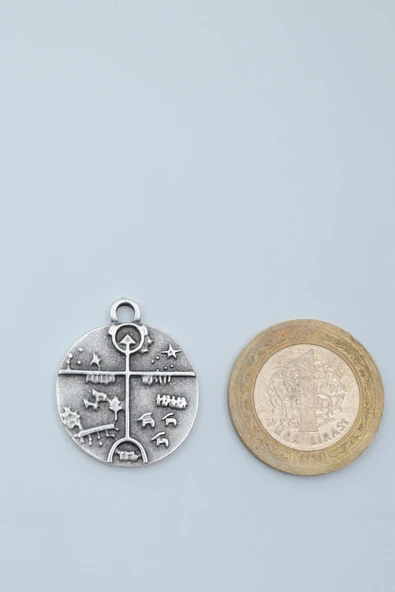 Kam - Şaman Davulu Gümüş Kaplama Kolye Ucu