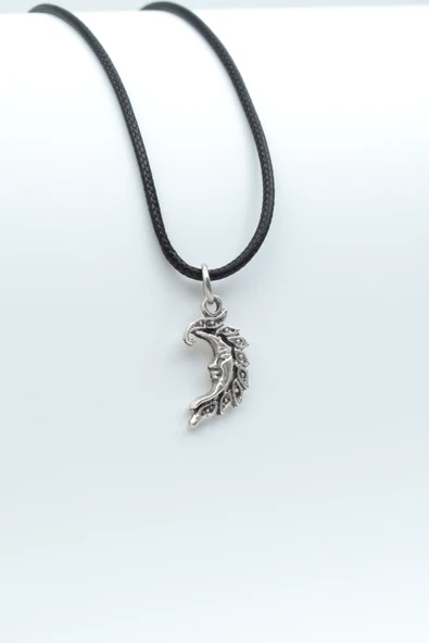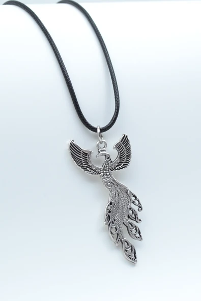 Zümrüdü Anka Kuşu Gümüş Kaplama Deri İp Kolye