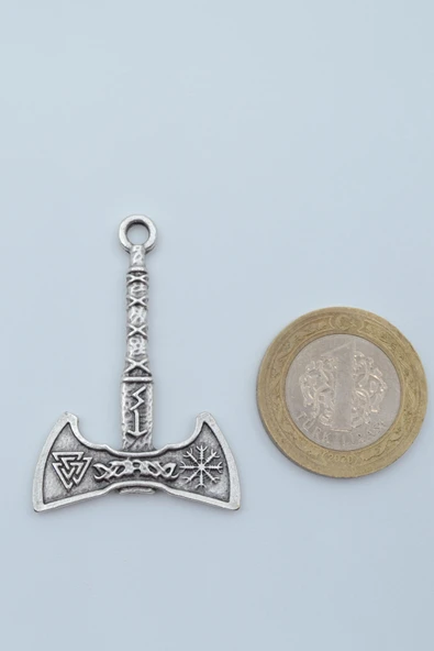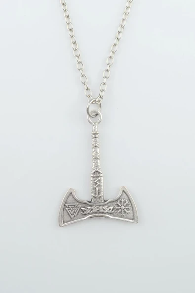 Viking Run Sembol Balta Gümüş Kaplama Düz Zincir Kolye