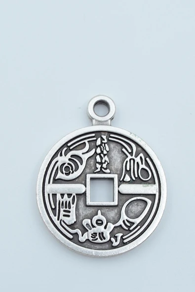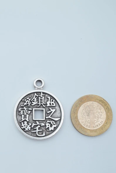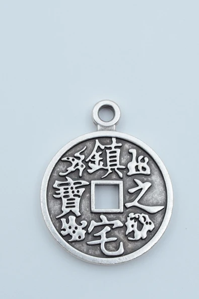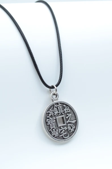 Feng Shui Çin Şans Parası Gümüş Kaplama Deri İp Kolye