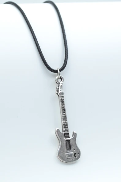 Elektro Gitar Gümüş Kaplama Deri İp Kolye
