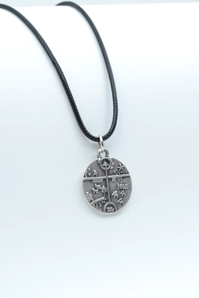 Kam - Şaman Davulu Gümüş Kaplama Deri İp Kolye