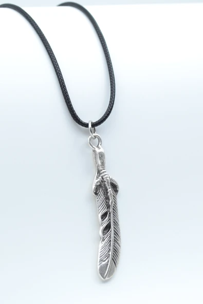 Kartal Pençesi - Kuş Tüyü Gümüş Kaplama Deri İp Kolye