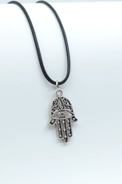 Fatma Ana Eli Gümüş Kaplama Deri İp Kolye