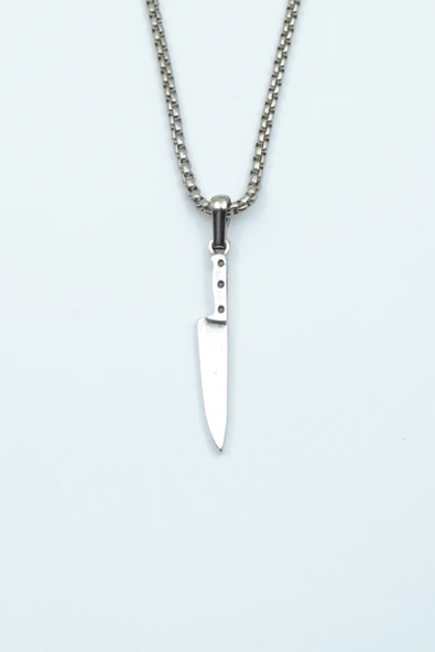 Bıçak - Gastronomi Gümüş Kaplama Örme Zincir Kolye