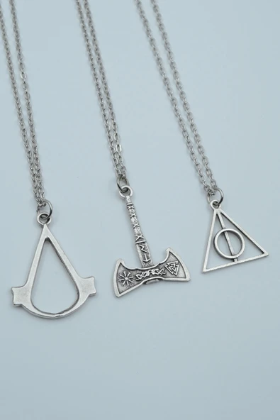 3'lü Assassin’s Creed Viking Balta Harry Potter Gümüş Kaplama Kolye Seti