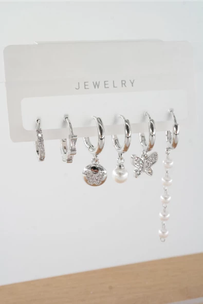 Kadın Vip Seri Zirkon Taşlı Karışık Figürlü 6'lı Küpe Seti ZRK0026