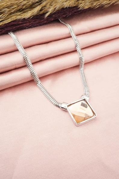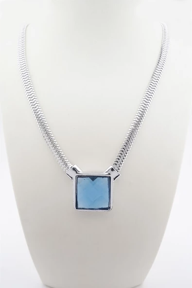 Kadın Özel Tasarım Kare Model Kesme Taşlı Model Yılan Zincirli Kolye