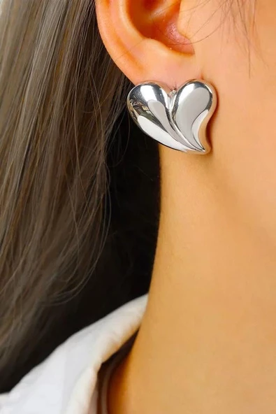 Kadın Bombeli 4cm Kalp Küpe zrk00591