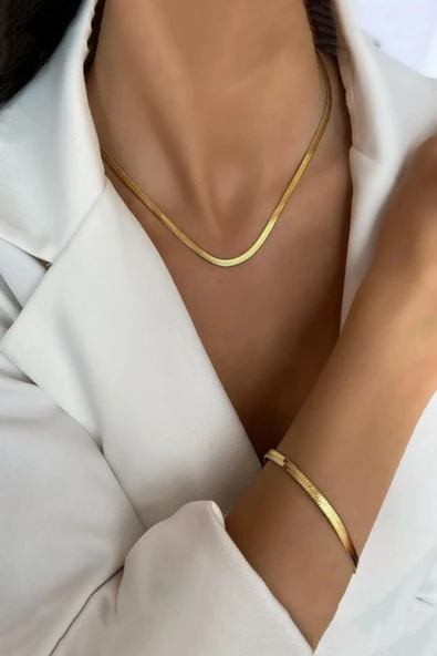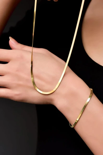 Kadın Kolye ve Bileklik 316 L Çelik Vip Seri Antialerjik Kararmaz İtalyan Zincir Kolye ( 45cm +7 cm uzatma ) ve Bileklik Seti( 16 +7 cm uzatma )
