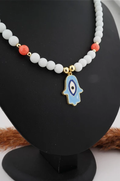 Kadın Cam Boncuklu Fatma Ana Eli Özel Tasarım Kolye