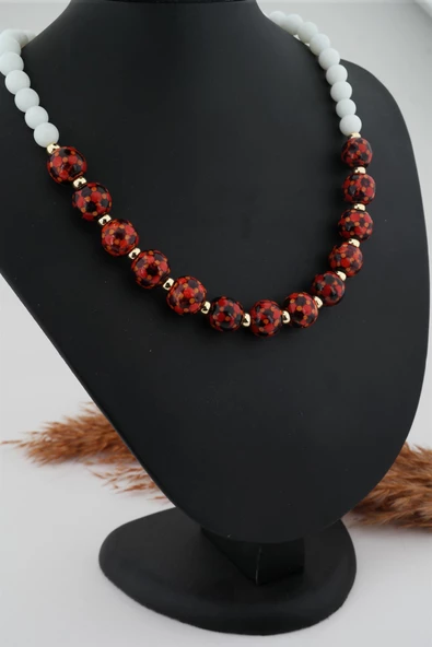 Kadın Cam Boncuklu Fimo Detaylı Özel Tasarım Kolye