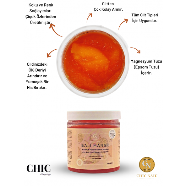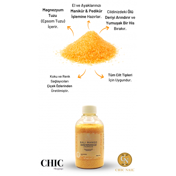 Chic Nail Manikür & Pedikür ve Vücut Peeling Bali Mango 250 gram / Epsom Tuzu / İngiliz Tuzu
