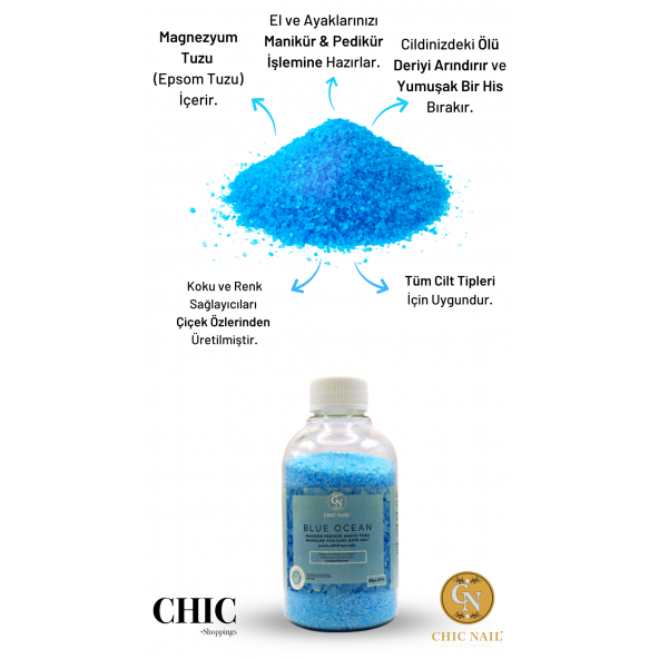 Chic Nail Manikür & Pedikür ve Banyo Tuzu Blue Ocean 1 KG / Epsom Tuzu / İngiliz Tuzu