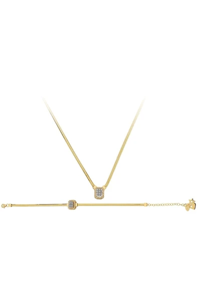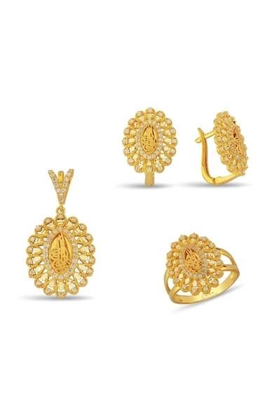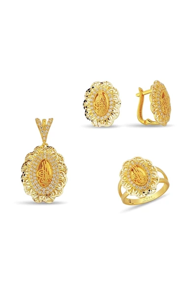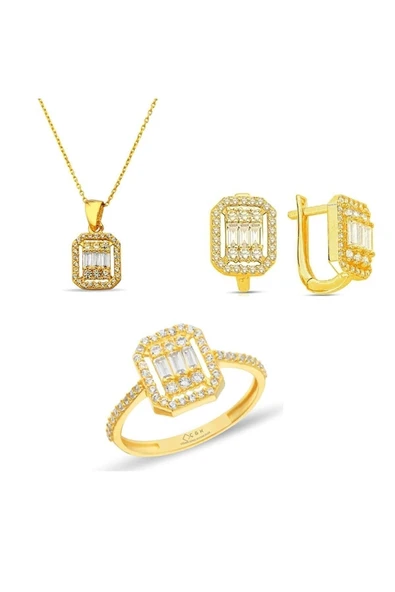 Kadın 8 Ayar Altın Taşlı Üçlü Set Takım