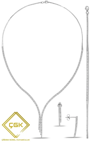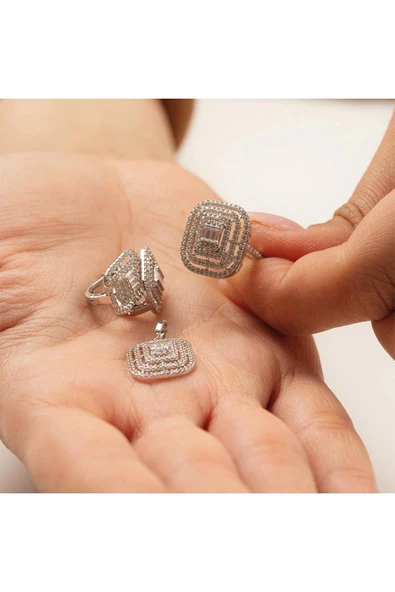 Beyaz Altın 3'lü Yuvarlak Taşlı Set