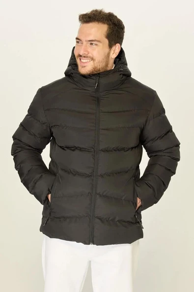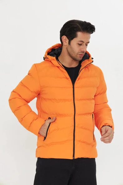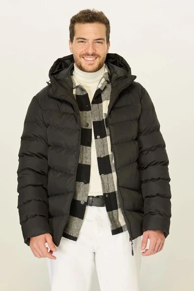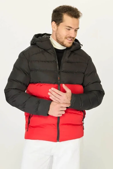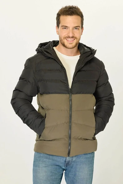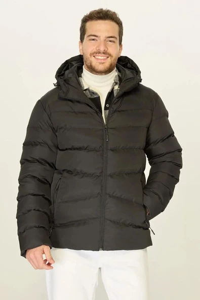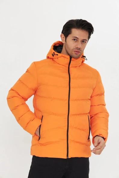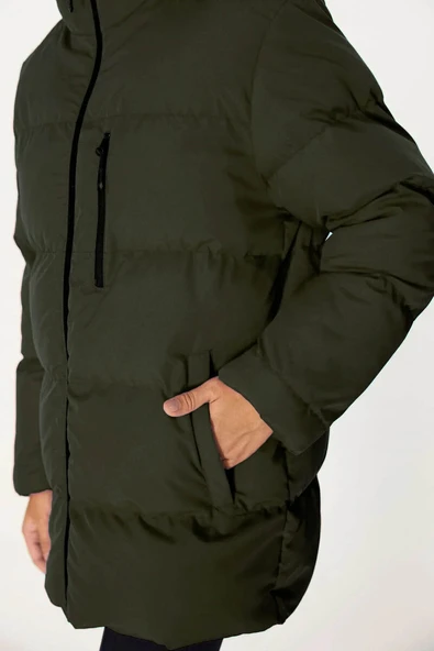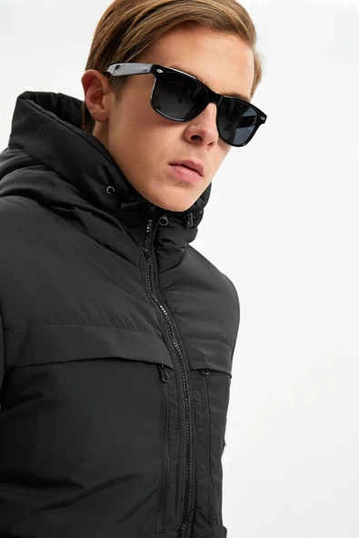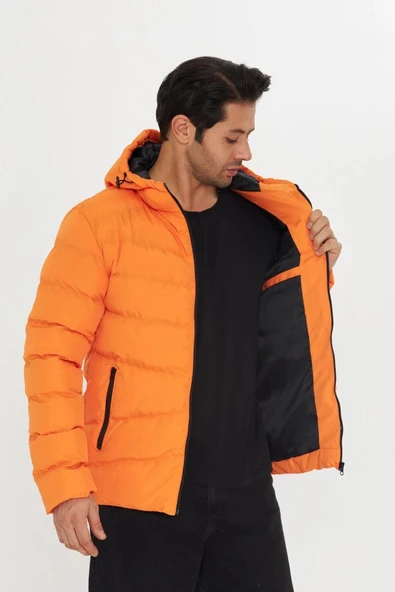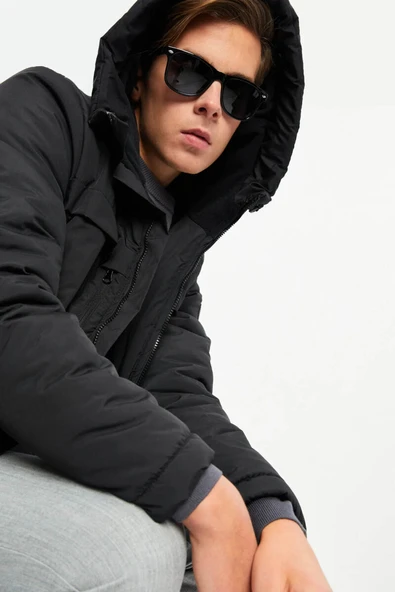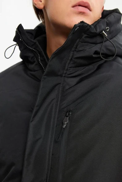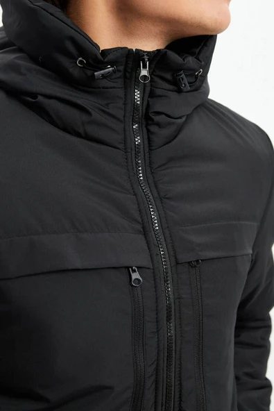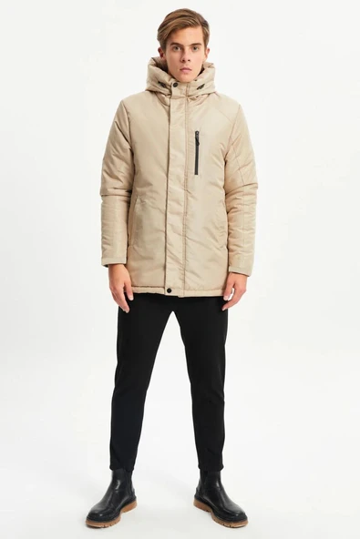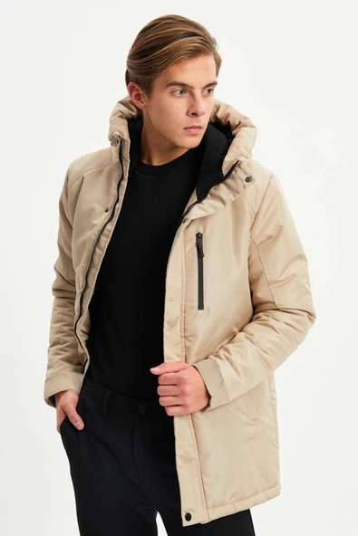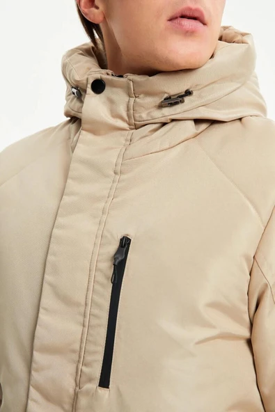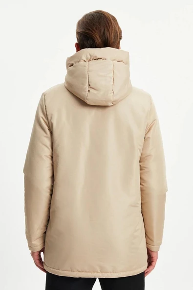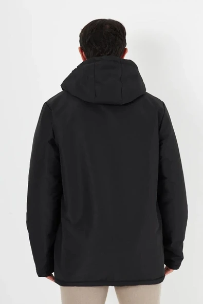 İçi Astarlı Su ve Rüzgar Geçirmez Cepli Kapüşonlu Erkek Mont