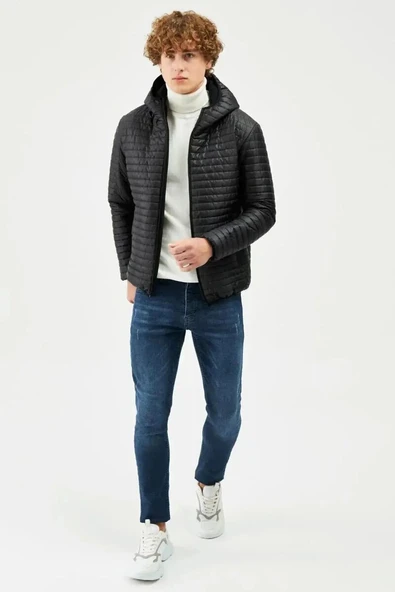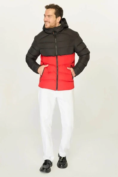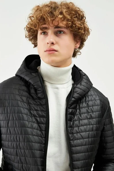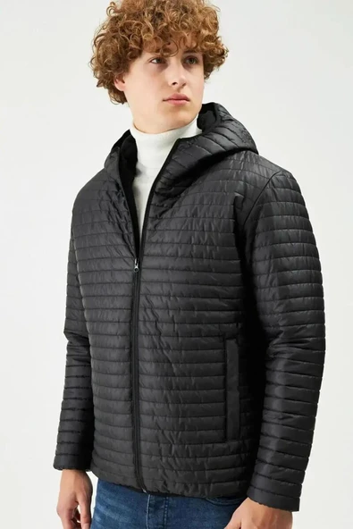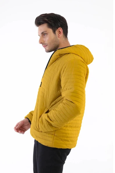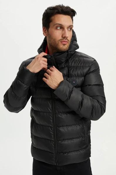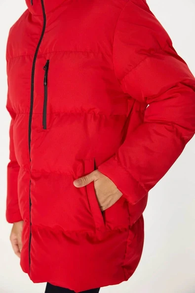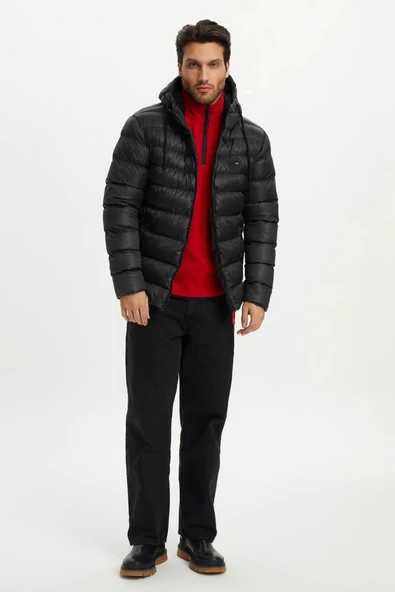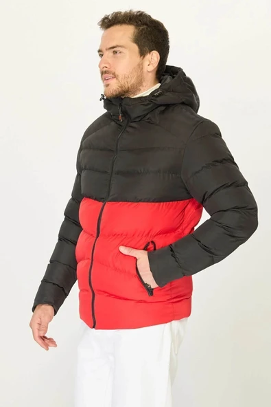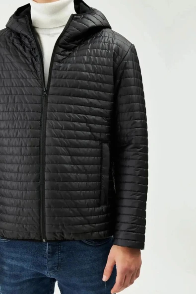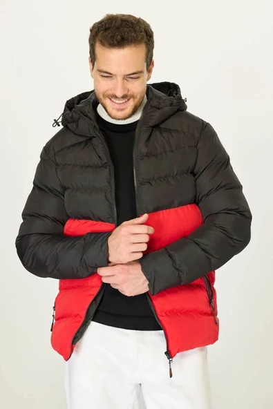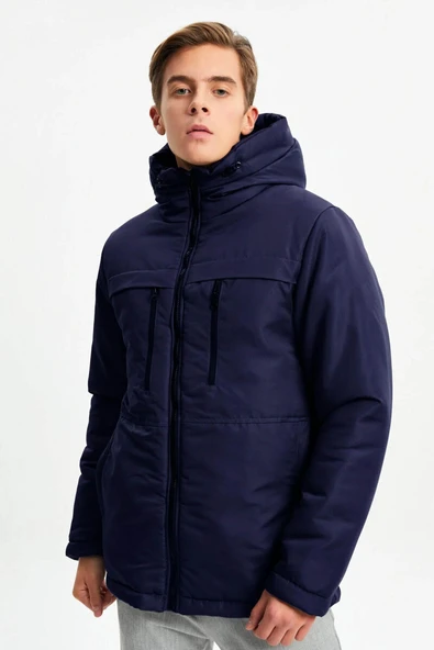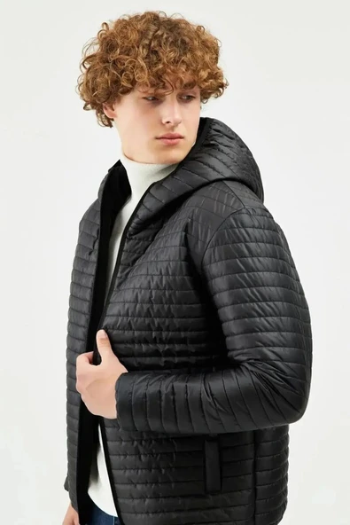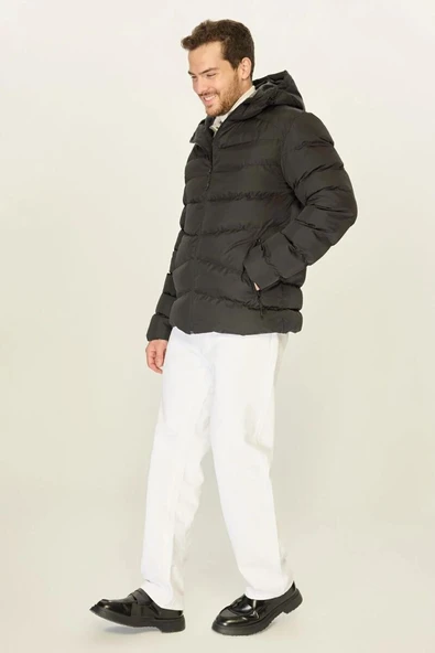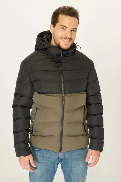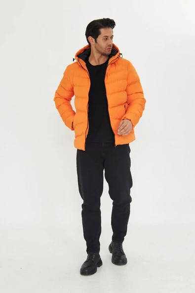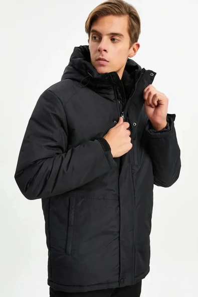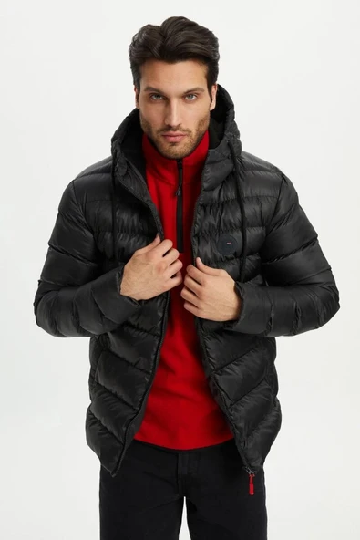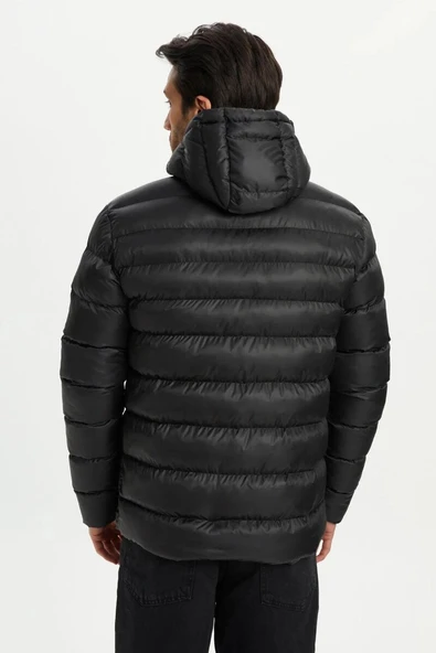 İçi Astarlı Su ve Rüzgar Geçirmez Cepli Kapüşonlu Erkek Mont