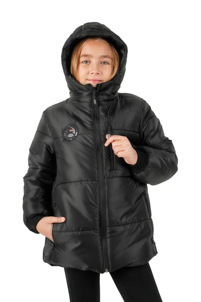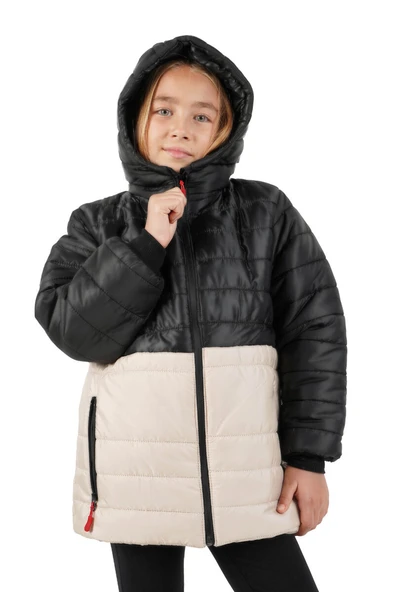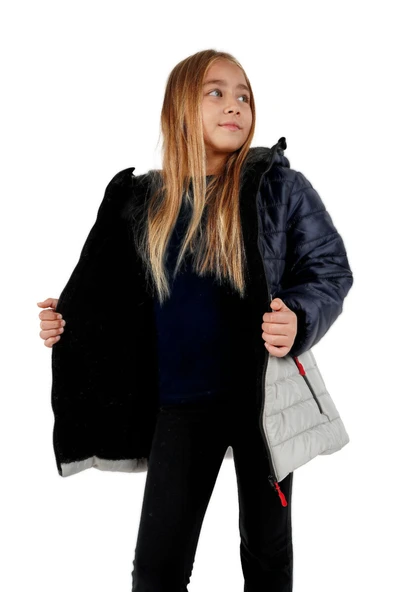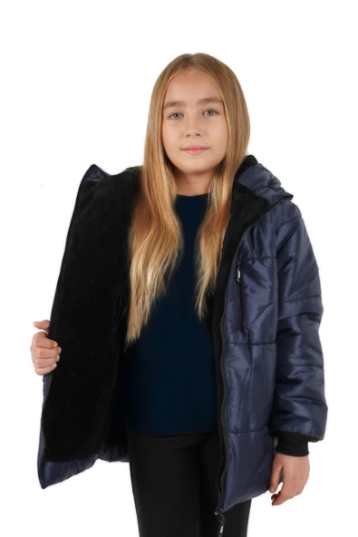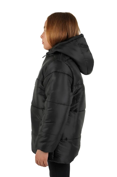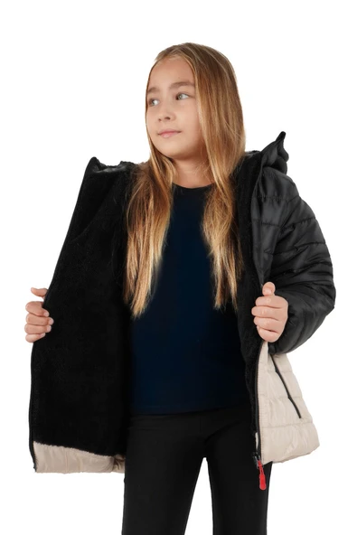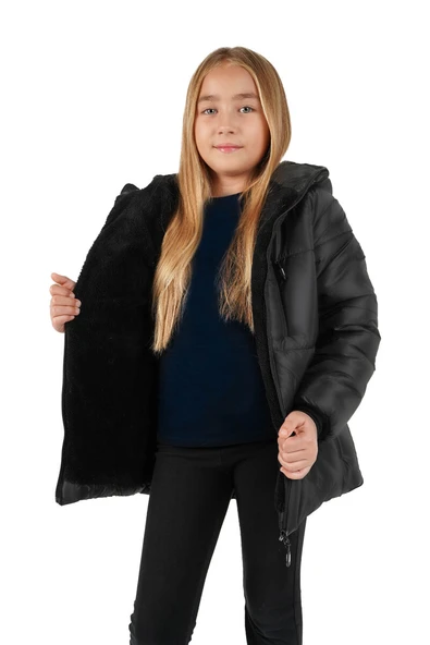 İçi Kürklü Su ve Rüzgar Geçirmez Kapüşonlu Kız Çocuk Mont