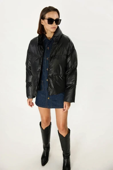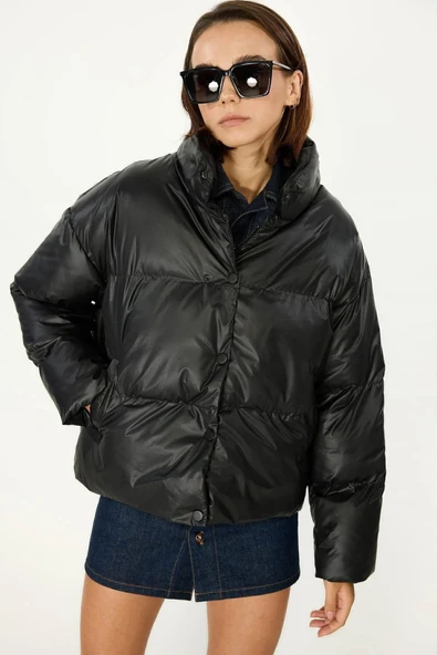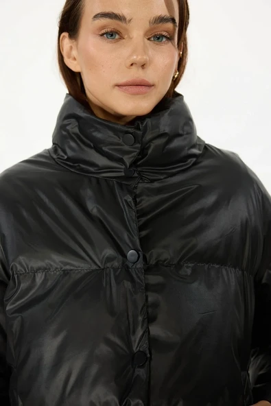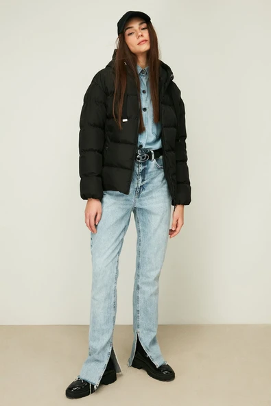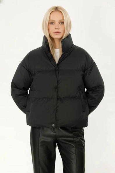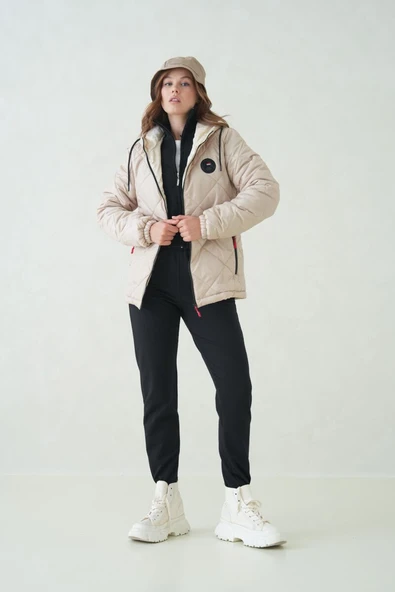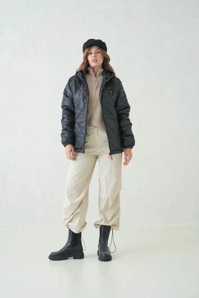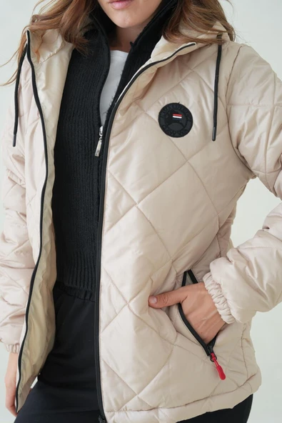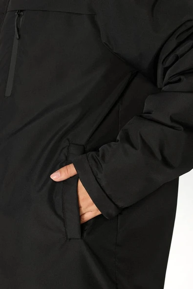 İçi Astarlı Su ve Rüzgar Geçirmez Cepli Dik Yaka Kadın Mont