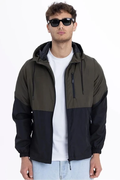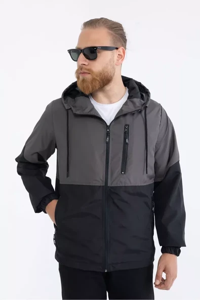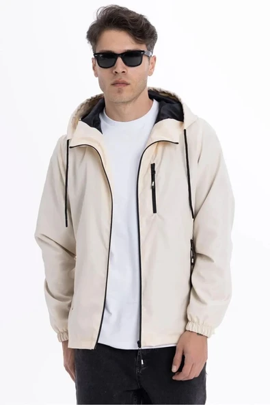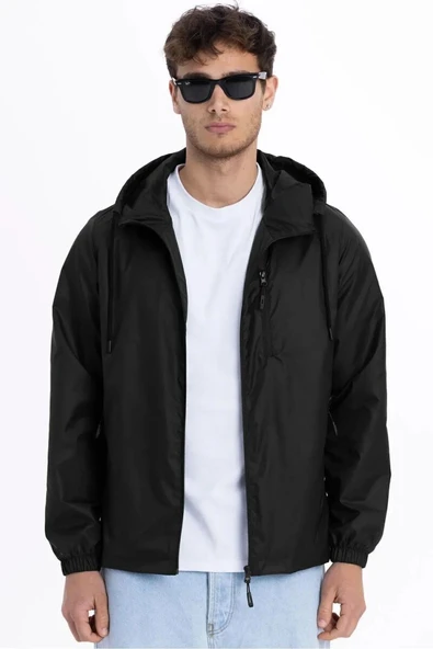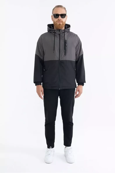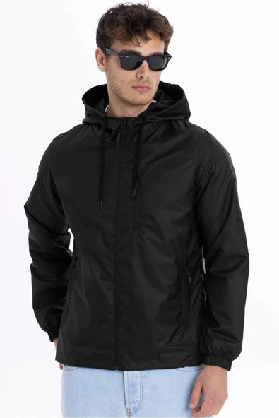 İçi Astarlı Su ve Rüzgar Geçirmez Cepli Erkek Yağmurluk