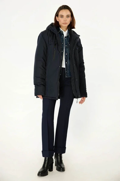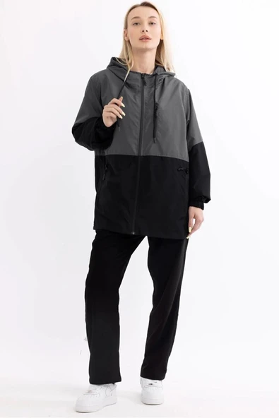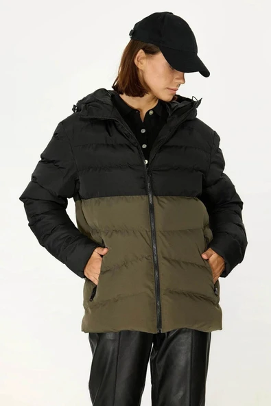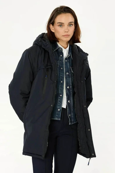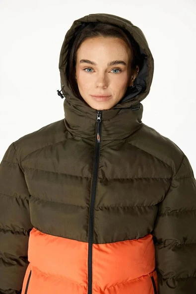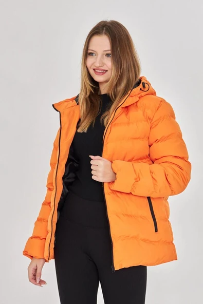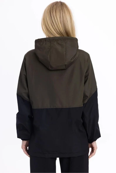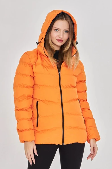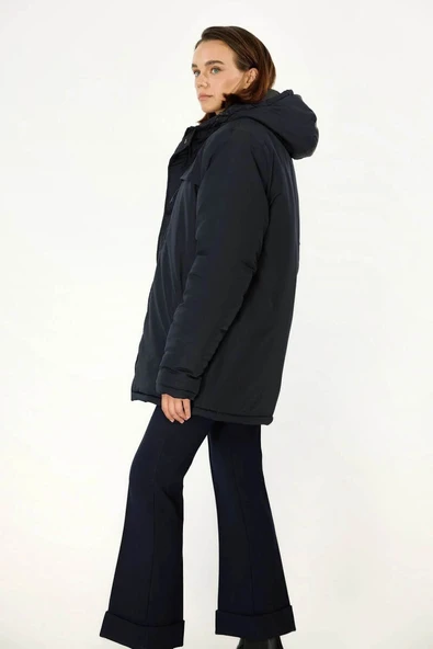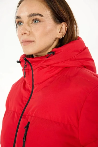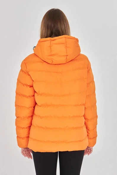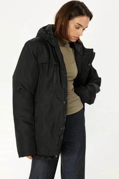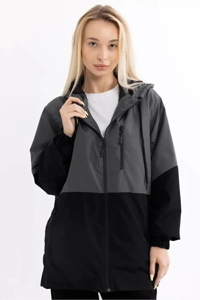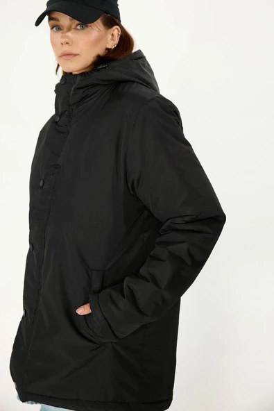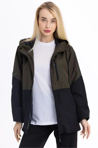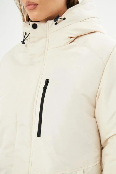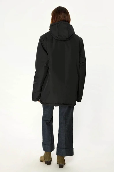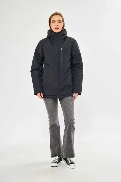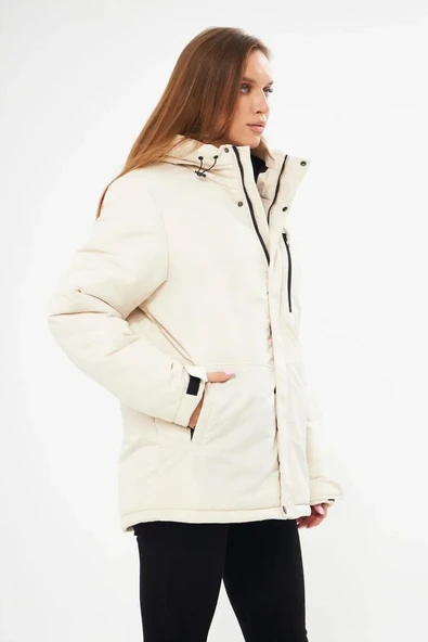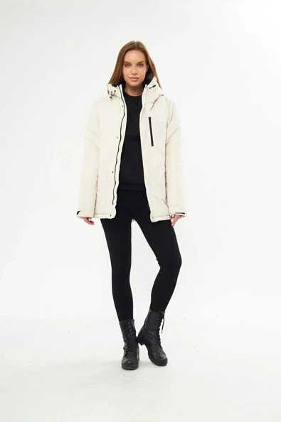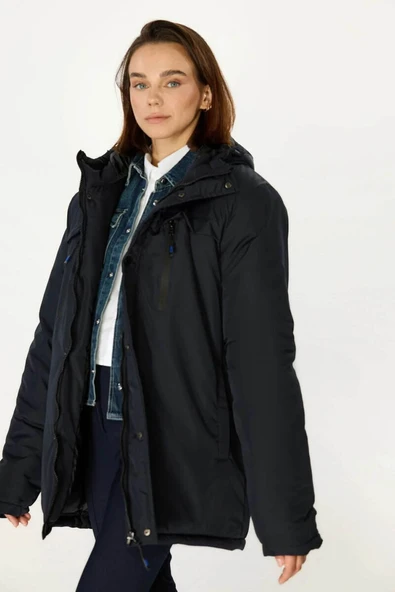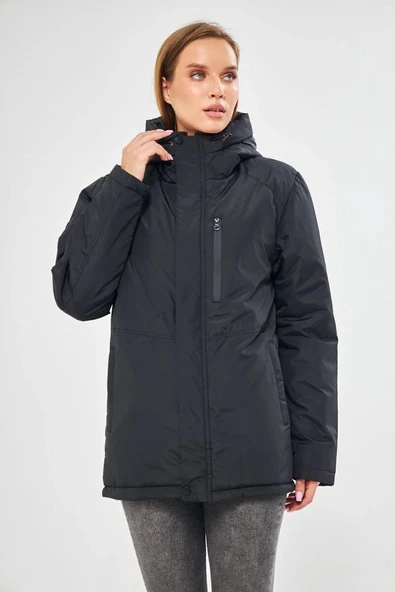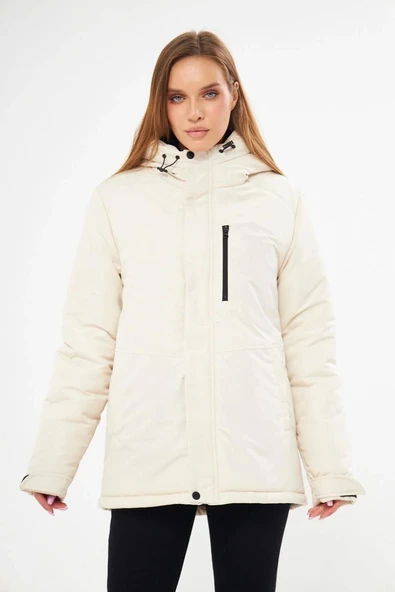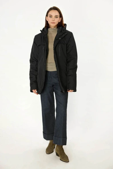 İçi Astarlı Su ve Rüzgar Geçirmez Cepli Kapüşonlu Kadın Mont