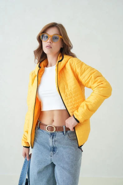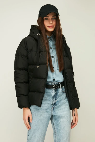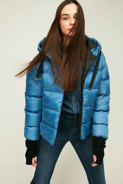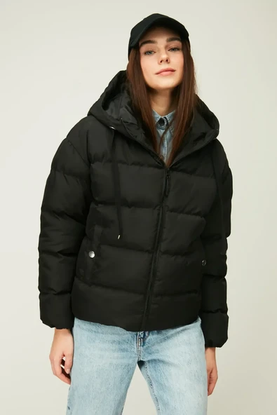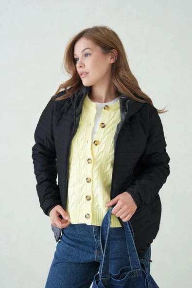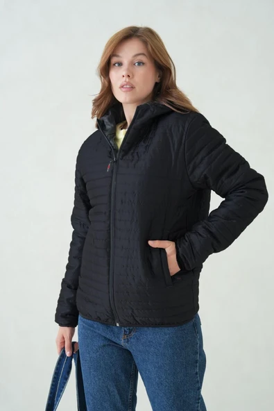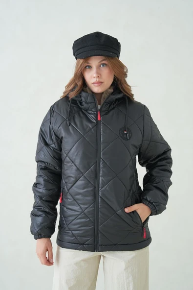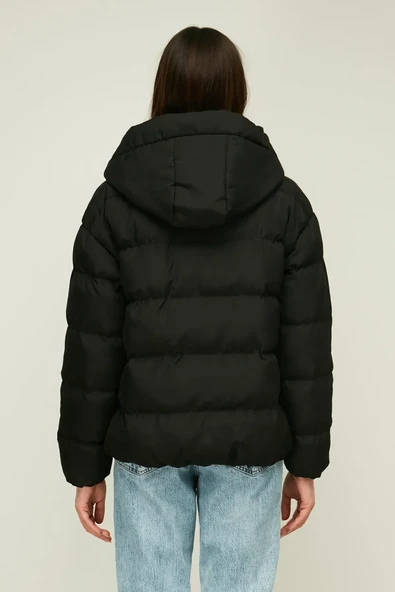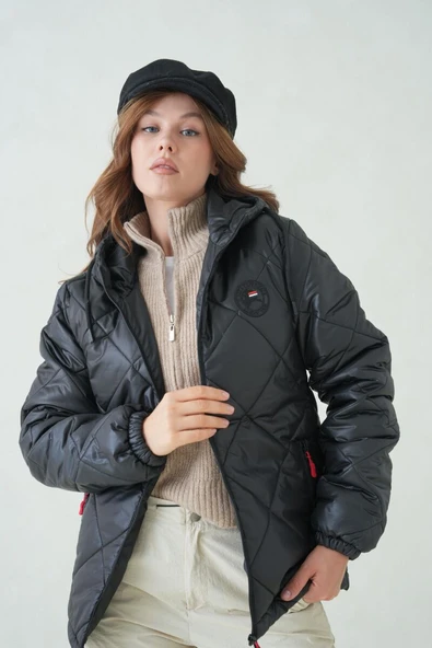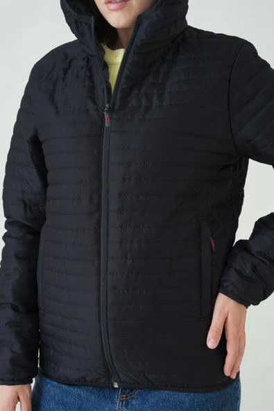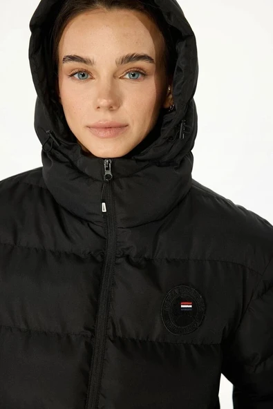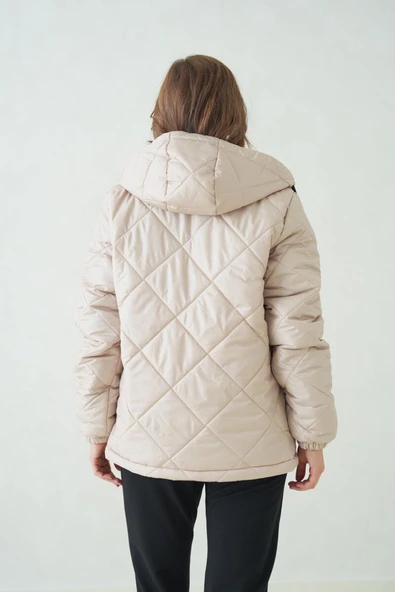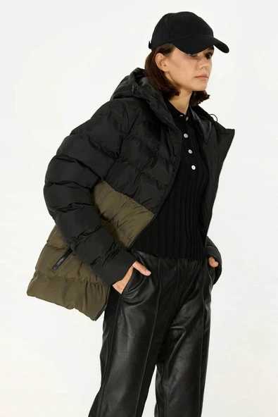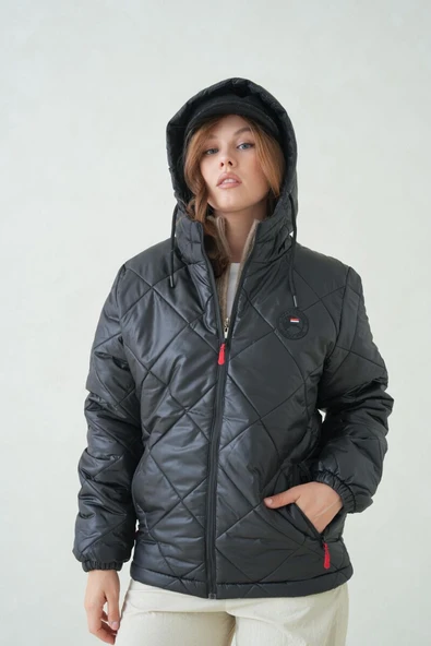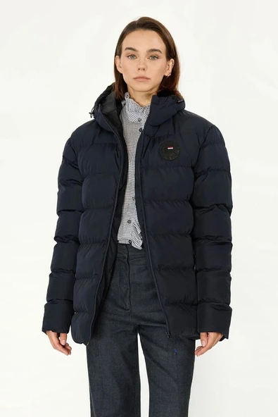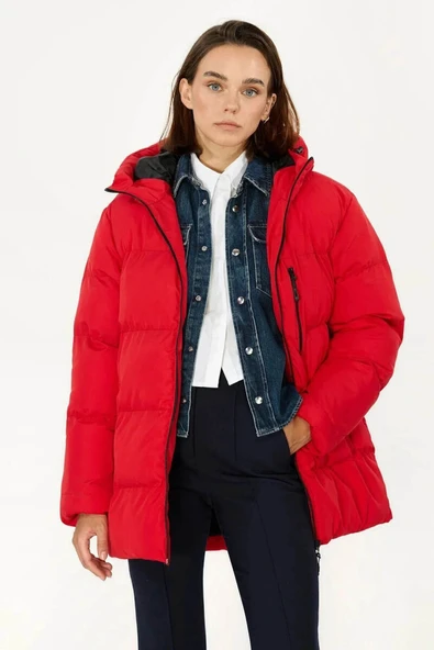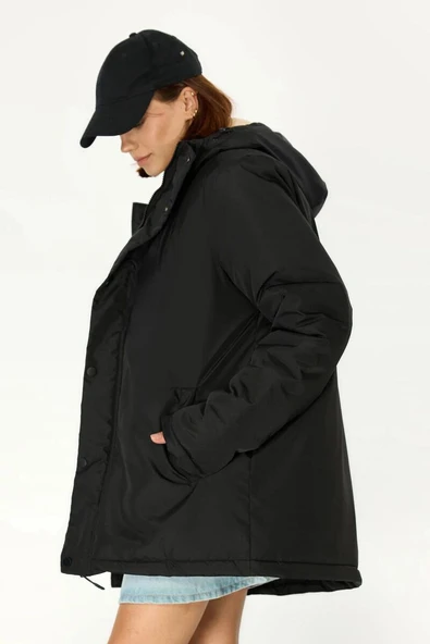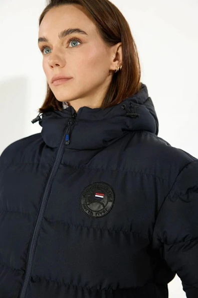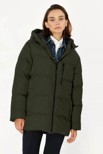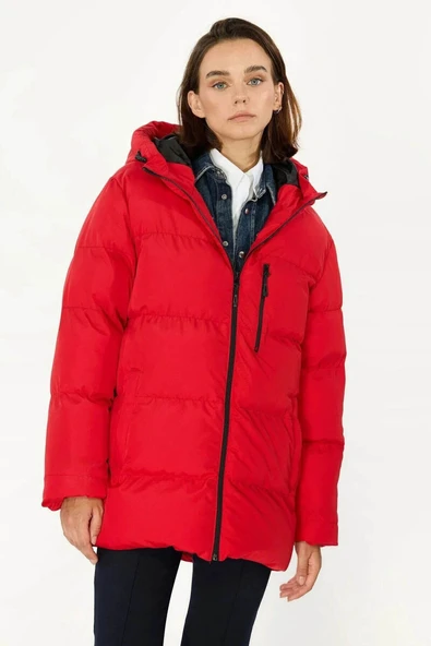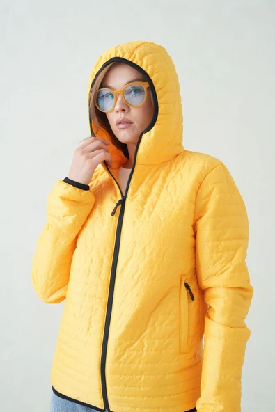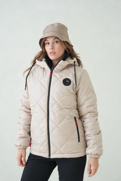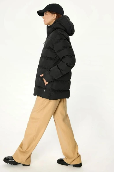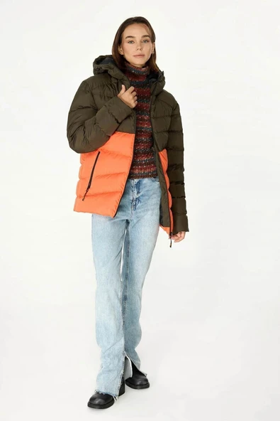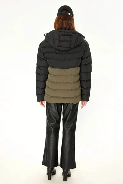 İçi Astarlı Su ve Rüzgar Geçirmez Cepli Kapüşonlu Kadın Mont