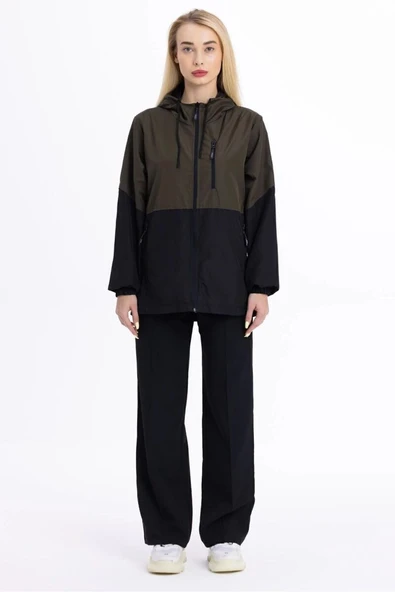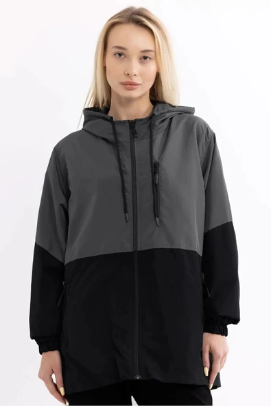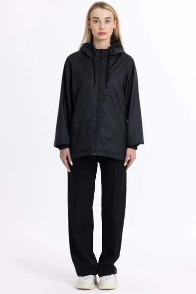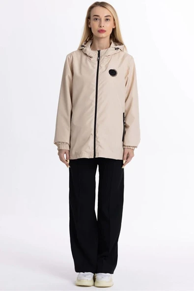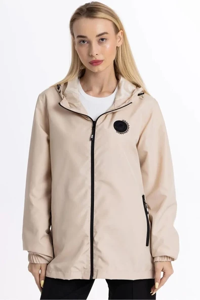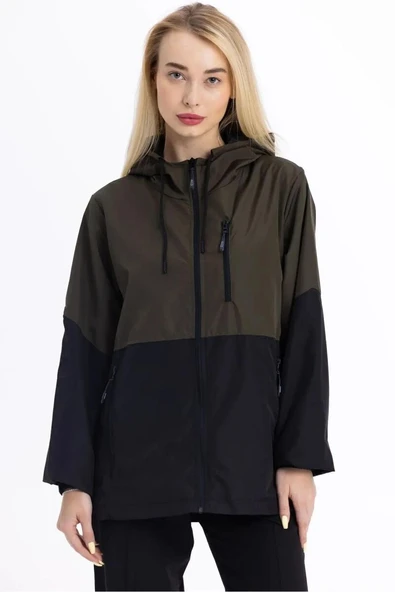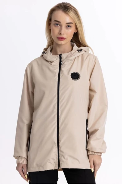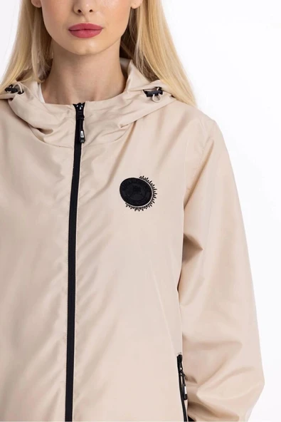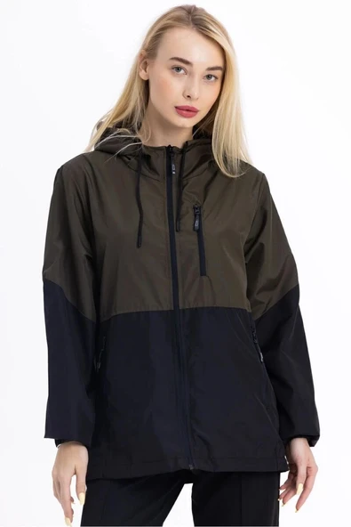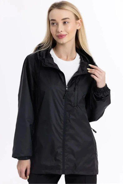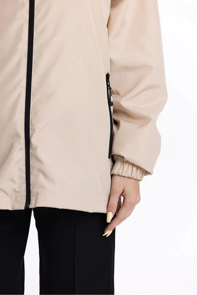 İçi Astarlı Su ve Rüzgar Geçirmez Cepli Kadın Yağmurluk