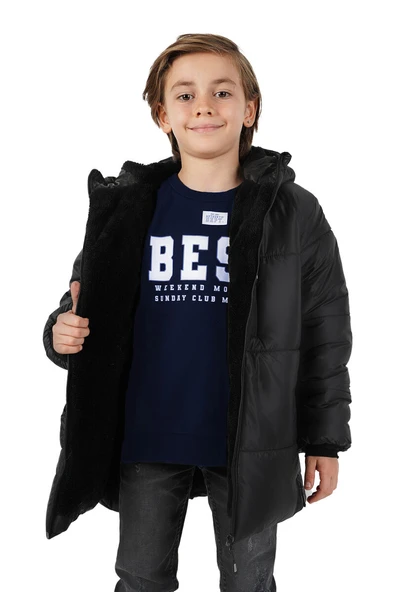 İçi Kürklü Su ve Rüzgar Geçirmez Erkek Çocuk Mont