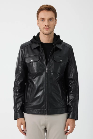 Advent Siyah Erkek Deri Mont