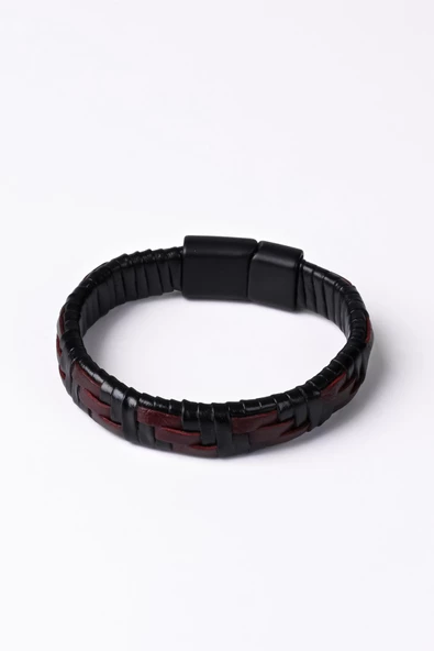 Hakiki (Gerçek) Deri Bileklik Siyah Bordo 117535