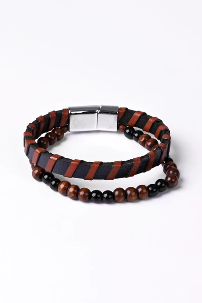 Boncuk Bileklik Siyah Kahverengi Beyaz 117545