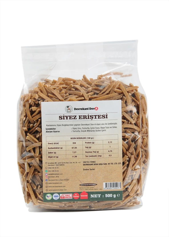 Siyez Erişte 500 Gr ( Aç-Kapa Ambalaj )