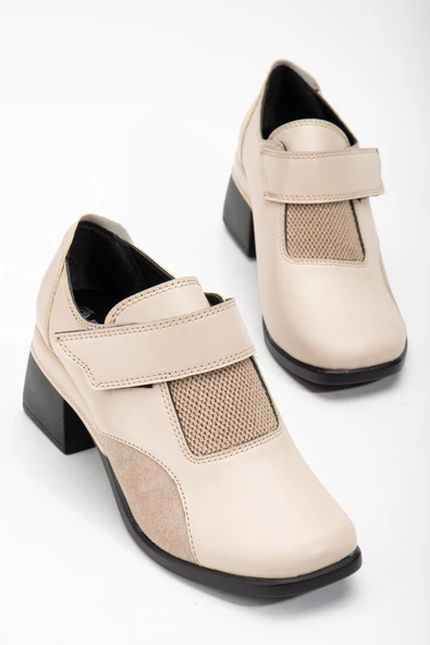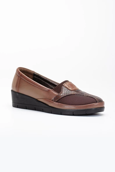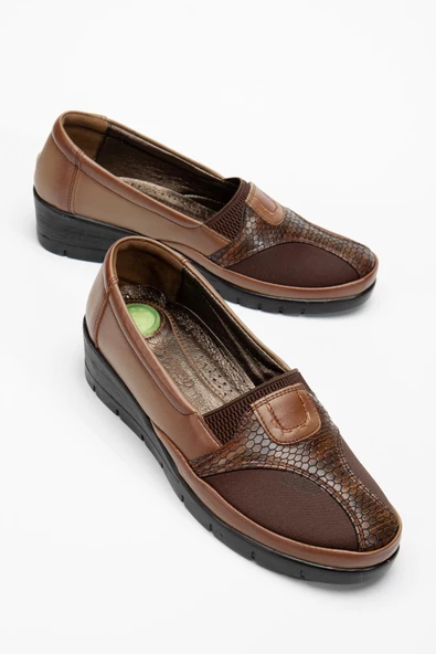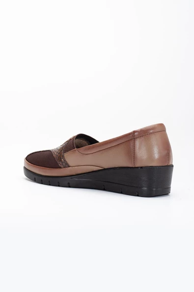 Büyük Numara Hakiki Deri Kadın Günlük Ortopedik Ayakkabı Vizon Yan Streçli